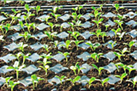Since lettuce seeds are very fine, they are difficult to disperse with the right density. Thus, plug planting is employed and organic soil is used to produce strong seedlings.